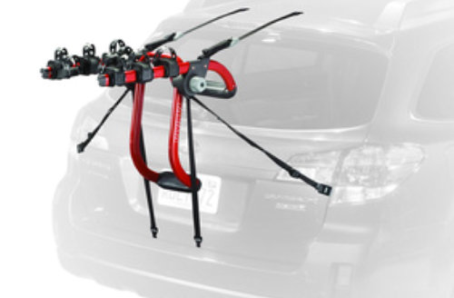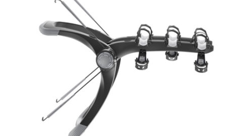 Strap-type bike carrier for rear door mounting. This is not a universal fit bike carrier and you should check your vehicle on Thule’s website